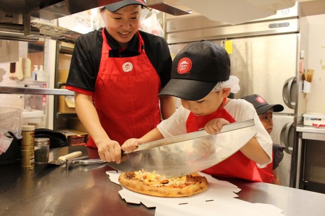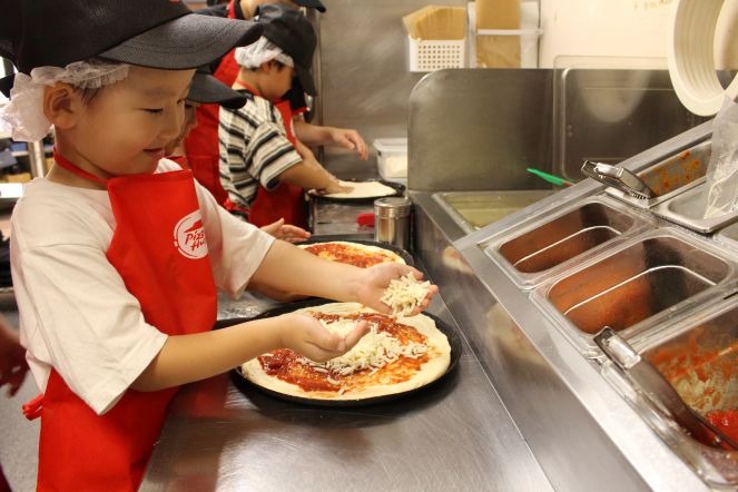 子どもが自分の手でピザをつくれる特別イベント、ピザハットの 「ピザづくりたいけん教室」。