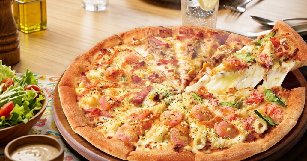 海老・蟹・チキン・プルコギの4種類を一度に楽しめる、グラタンピザの魅力をぎゅっと詰め込んだ1枚。